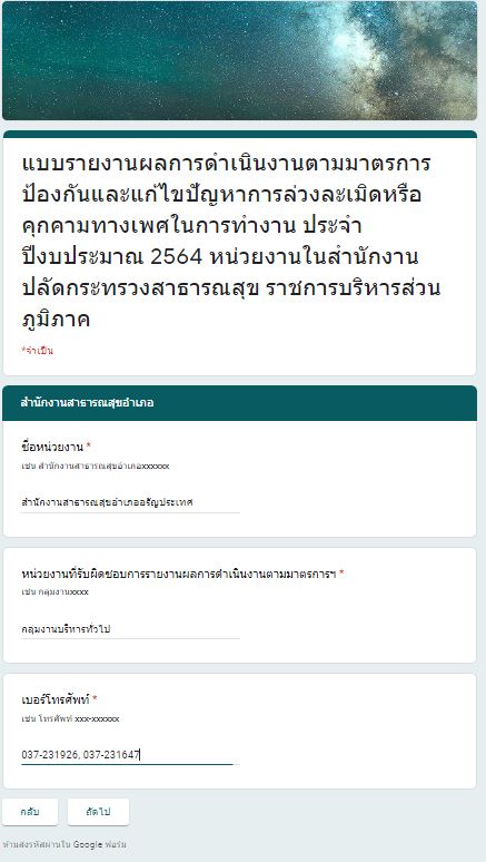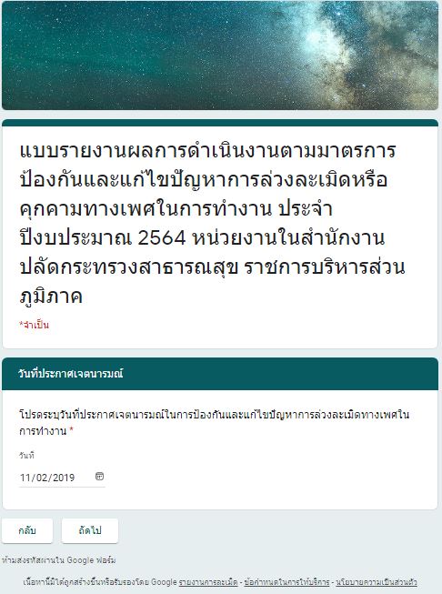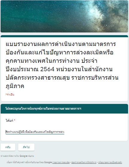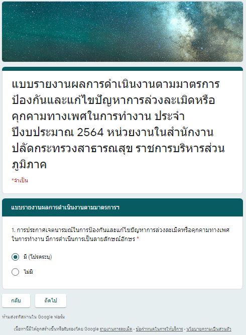รายงานการกำกับติดตามมาตรการป้องกันและแก้ไขปัญหาการล่วงละเมิดหรือคุกคามทางเพศในการทำงาน(รอบ 12 เดือน)