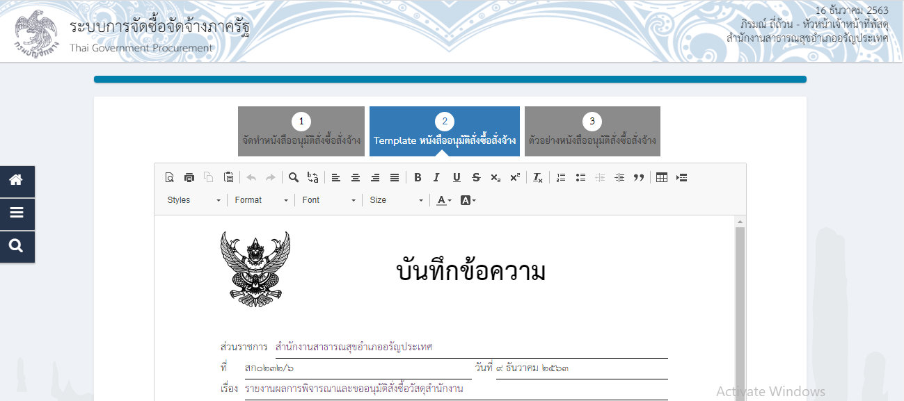 2.รายงานขอซื้อวัสดุสำนักงาน